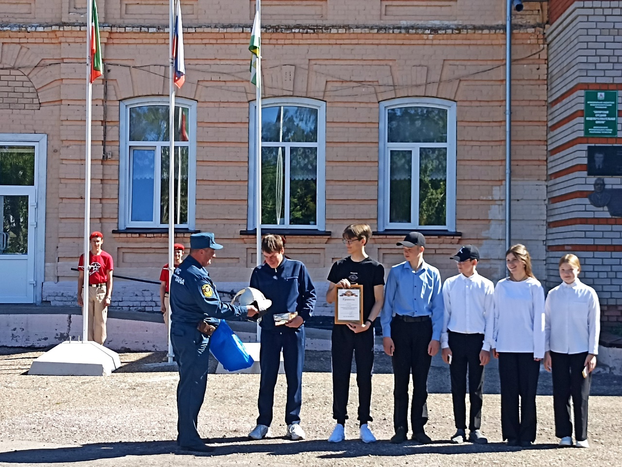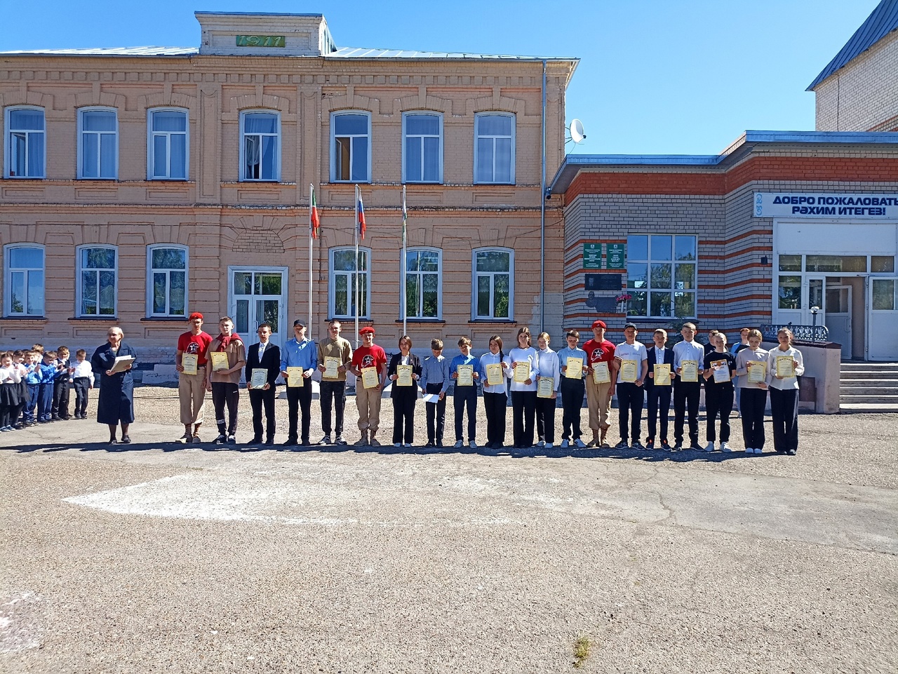 Сегодня еженедельная линейка состоялась с поднятия флагов и пения гимнов РФ и РТ на свежем воздухе. Начальник отдельного поста Билярск Чистопольского отряда ППС РТ Измайлов Э. Д. поздравил команду ребят Билярской школы "Горячие сердца" за 2 место на Республиканском этапе Всероссийского смотра-конкурса "Лучшая дружина юных пожарных России" с заслуженной наградой и вручил пожарную каску. Заместитель директора по воспитательной работе Михайлова Е. В. вручила грамоты и дипломы за результативные и успешные участия в конкурсах детей. 9 класс поделились новостями. ????