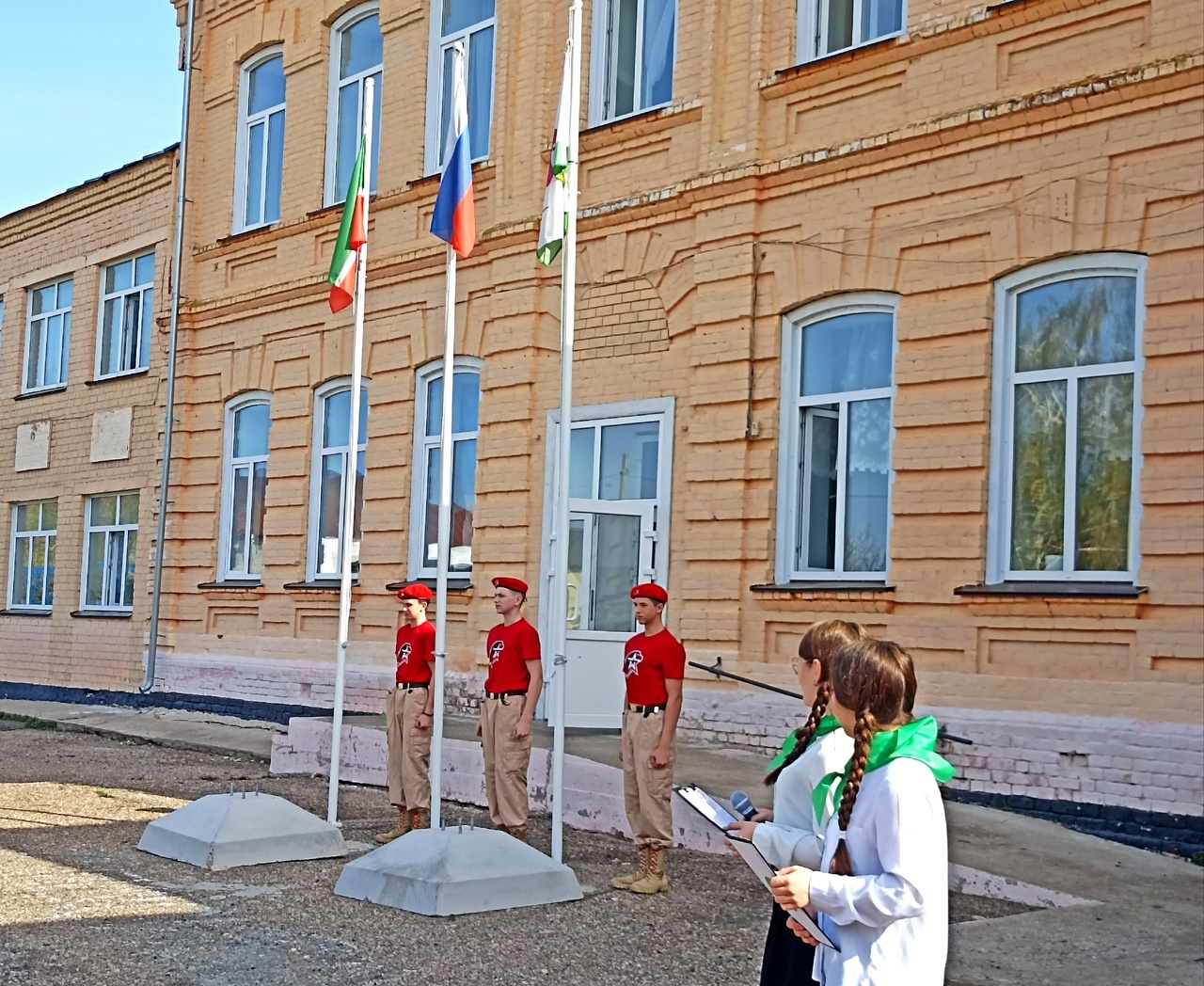 Сегодня еженедельная линейка состоялась с поднятия флагов и пения гимнов РФ и РТ на свежем воздухе. Директор Билярской школы Климова М. А. ознакомила с планами на предстоящую неделю и вручила грамоты и дипломы за результативные и успешные участия в конкурсах детей и учителей. 4 а класс поделились новостями.