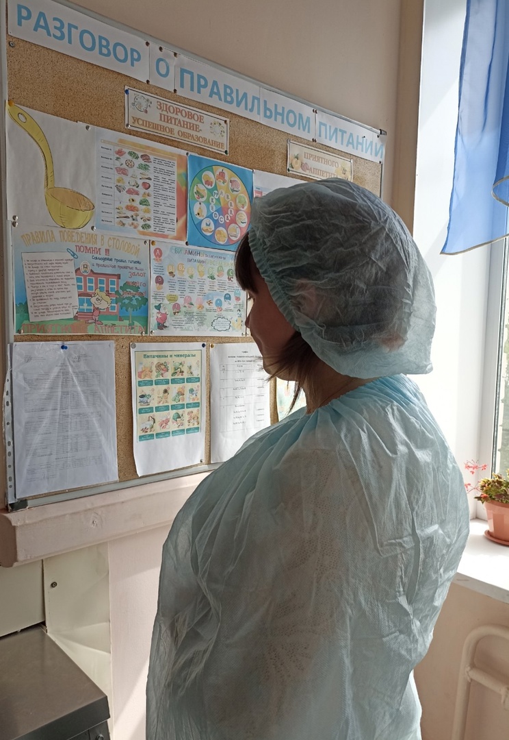 Родительница обучающейся 6 б класса проверила соответствие приготовленных блюд утверждённому меню, термометрии, соблюдение графика приёма пищи, санитарное состояние зала.