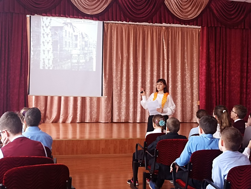 #Минпросвещения19 апрель-Бөек Ватан сугышы елларында совет халкы геноциды корбаннарын һәм аларның ярдәмчеләрен искә алу көне. Тәрбия буенча директор киңәшчесе Борисова Н. Ю.5нче сыйныф укучылары белән Польшадагы "Освенцим" концлагеры корбаннары турында тематик әңгәмә үткәрде, ул кечкенә корбаннар турында гына түгел, ә яшь Муравьевлар гаиләсе турында да сөйләде. аерылышканнар, алар җиңеп, исән калганнар.