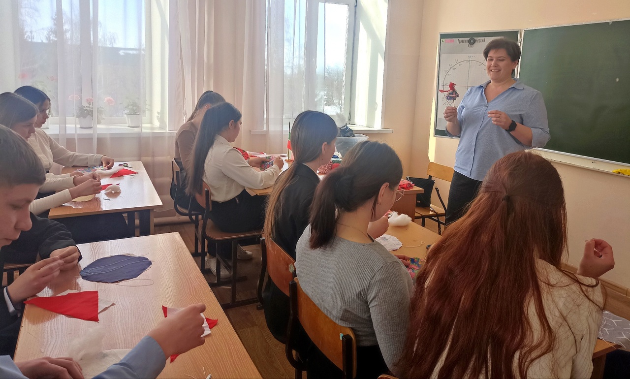 Сегодня сотрудники Алексеевской библиотеки провели с ребятами Билярской школы мастер-класс по изготовлению куклы- "Масленицы".
