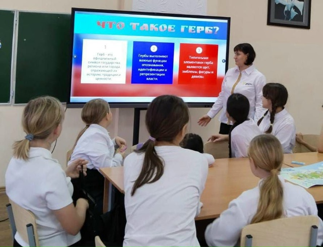 Во время урока ребята познакомились с историей появления герба России, изучили его символику и значение каждой детали. Мы рассмотрели, почему двуглавый орел стал символом нашего государства, обсудили смысл элементов герба, таких как короны, держава и скипетр.