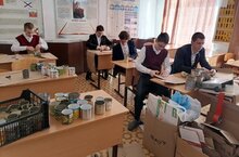 МБОУ "Биләр урта гомуми белем бирү мәктәбе" волонтерлары махсус хәрби операция зонасына җибәрү өчен окоп шәмнәре ясыйлар.