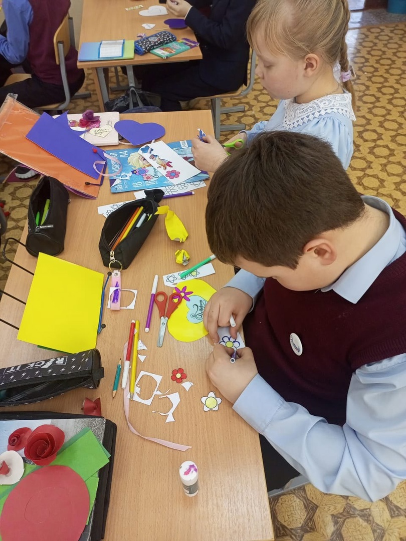Активисты центра детских инициатив Билярской школы провели мастер-класс "Открытка маме с 8 марта", с обучающимися 3 -го класса.
