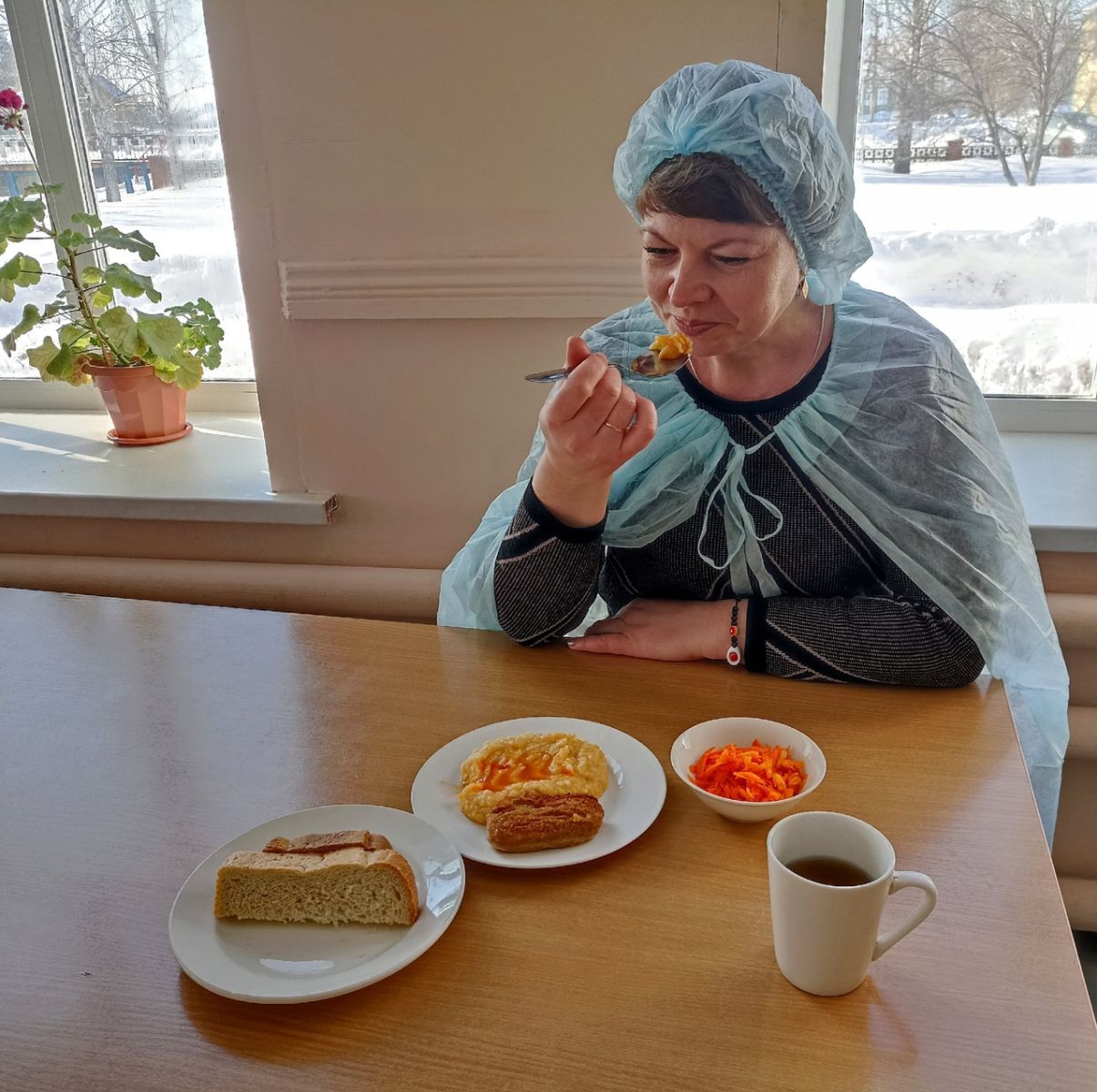 Сегодня родительница обучающегося 8 класса Билярской школы посетила школьную столовую с целью контроля горячего питания. Блюдо соответствует меню, горячее и вкусное!