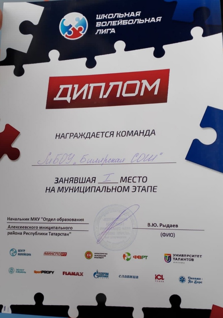 Биләр мәктәбе егетләре мәктәп командалары арасында "мәктәп волейбол Лигасы" турнирының муниципаль этабында 3 нче урынны алдылар. Котлыйбыз! Бик яхшы!