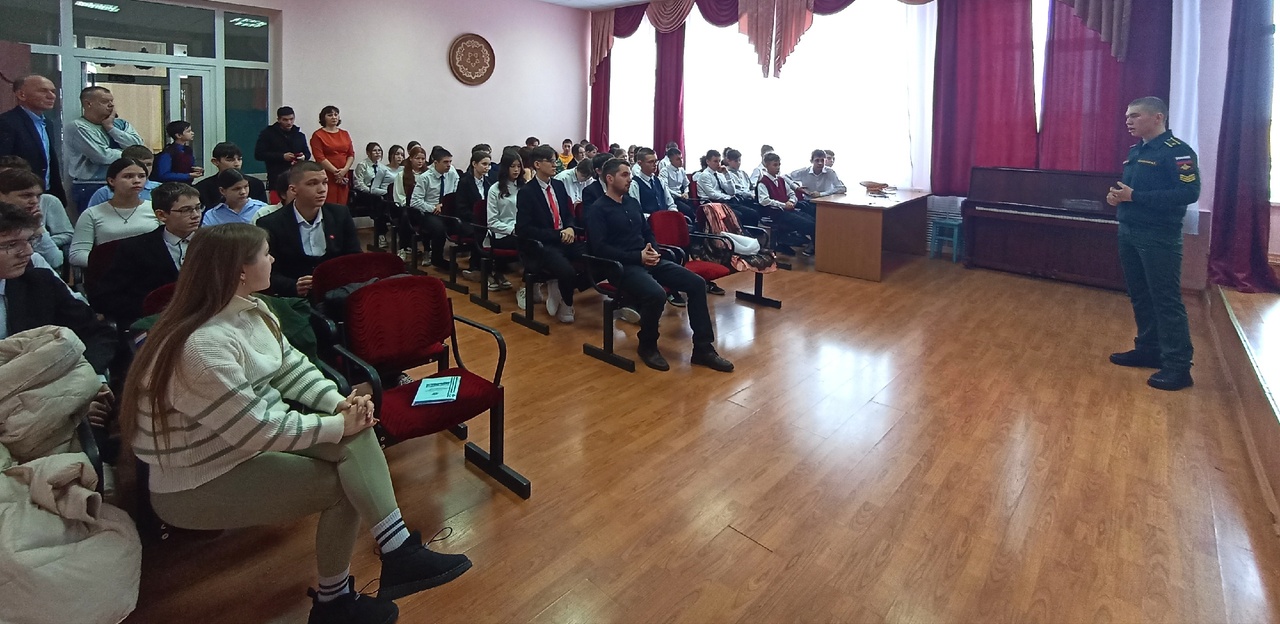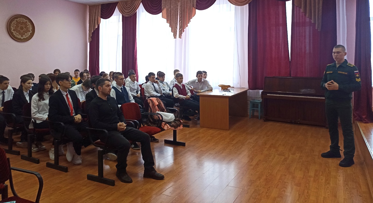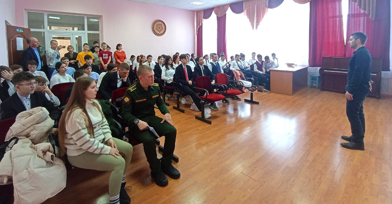 Прапорщик Омского автобронетанкового инженерного института Баранов Семён Васильевич и курсант Казанского высшего танкового командного ордена Жукова Краснознамённого училища Корепанов Александр Дмитриевич посетили МБОУ "Билярская СОШ" для профориентационннной встречи.Ребята узнали об условиях поступления и видах профессиональной деятельности данного учреждения.Һөнәри юнәлеш бирүче очрашу