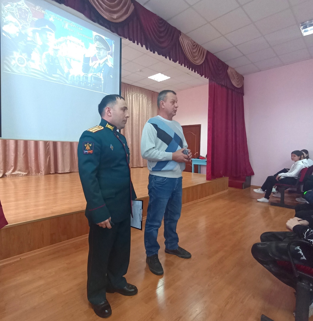 В МБОУ "Билярская СОШ" состоялась профориентационная встреча с Барановым А. А. - представителем Военной орденов Кутузова и Ленина Академии материально-технического обеспечения имени генерала Армии А. В. Хрулёва г. Санкт-Петербург. Подполковник рассказал об условиях поступления, проживания, о жизни военного в целом! Наглядно продемонстрирована деятельность военного в роликах, короткометражных фильмах. Заинтересованные ребята задавали вопросы по теме и получали полные ответы!Һөнәри юнәлеш бирүче очрашу