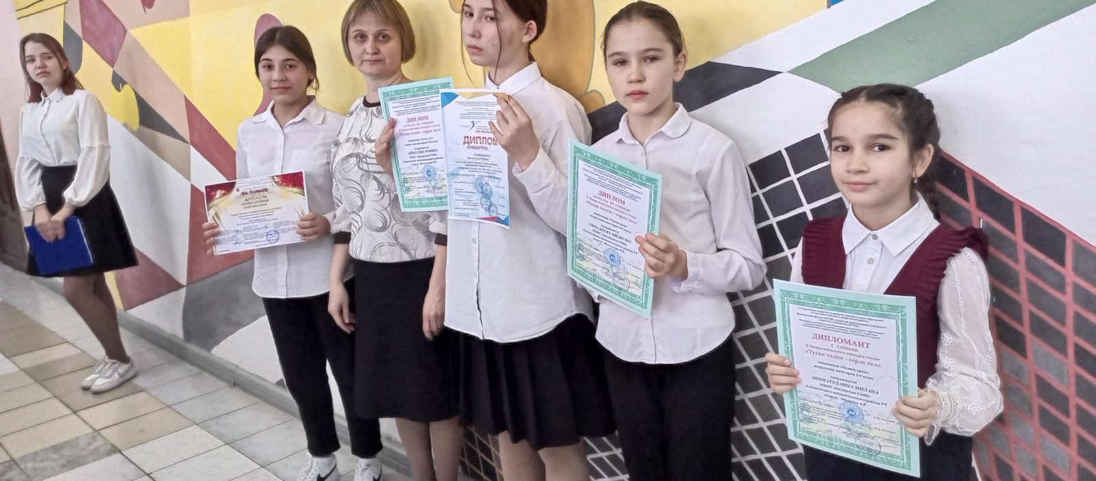 27.02 дәүләт флагларын күтәрүнең атналык линейкасында кабат дипломнар тапшырудан башка булмады, Биләр мәктәбенең 8нче сыйныф укучысы Сабинина Сабина, 8нче сыйныф укучысы Айткулова Руфина һәм Семенова Арина, 5нче сыйныф укучысы Әбрарова Язгөл, Гыймадиева Миләүшә һәм 2 б сыйныф укучысы Зиннәтуллина Милана. Линейка тәмамлангач, укучылар "Традицион гаилә кыйммәтләре" темасына "Мөһим нәрсәләр турында сөйләшү" дигән сыйныф сәгатенә үз классларына үтте.