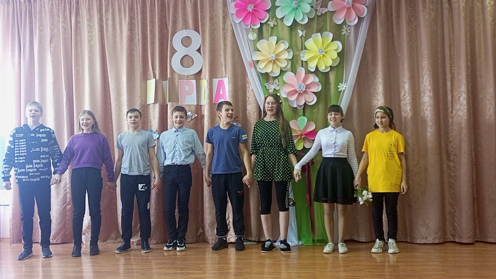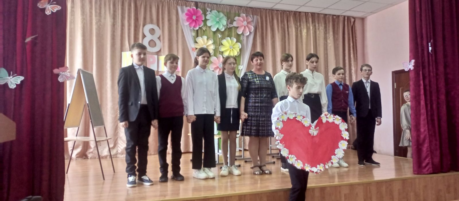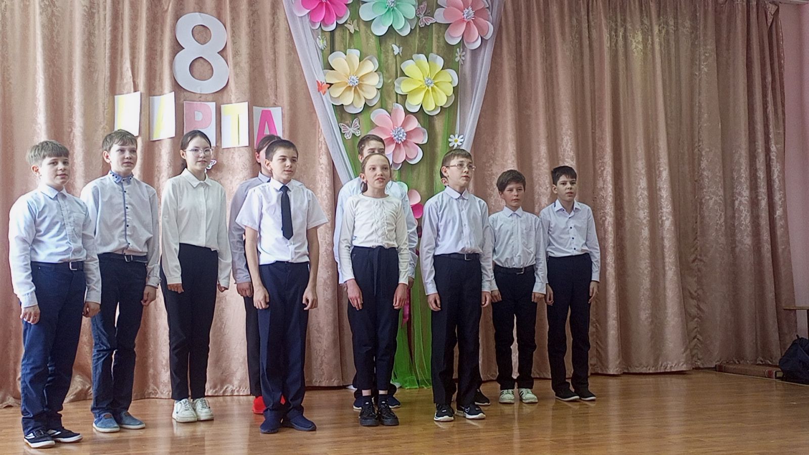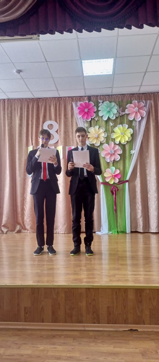 6.03 в преддверии праздника, в школе прошло праздничное мероприятие, посвящённое международному женскому дню, обучающиеся подготовили разнообразные номера художественной самодеятельности. Поздравления, песни, стихи звучали для присутствующих в зале мам, бабушек, учителей и учениц.