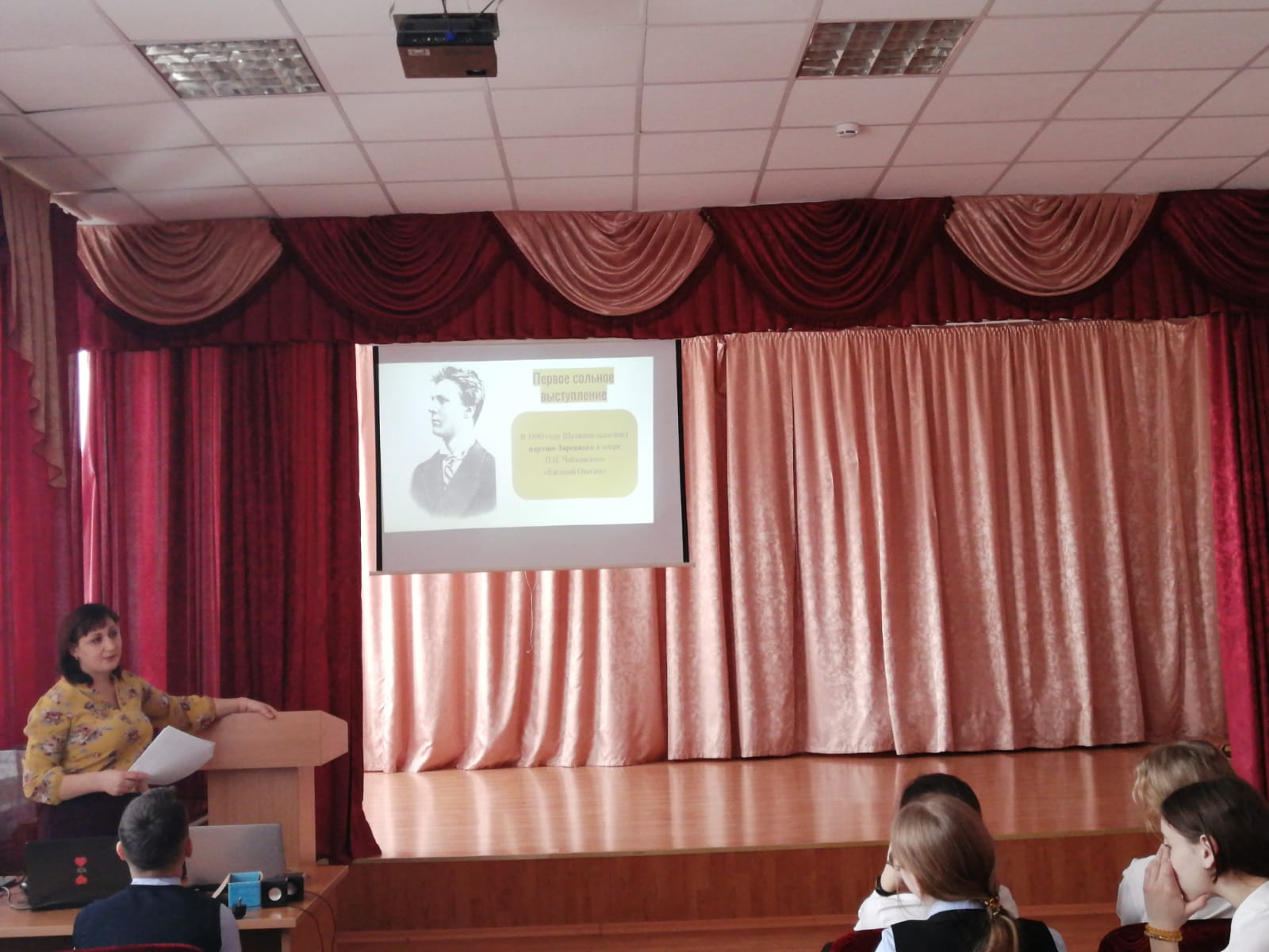 13 февральдә Дәрес темасы Бөек рус җырчысы, ватандашыбыз Ф.и. Шаляпинның тууына 150 ел тулуга багышланган мөһим сөйләшү проекты кысаларында булды. Дәрес 7 сыйныф укучылары белән үтте.