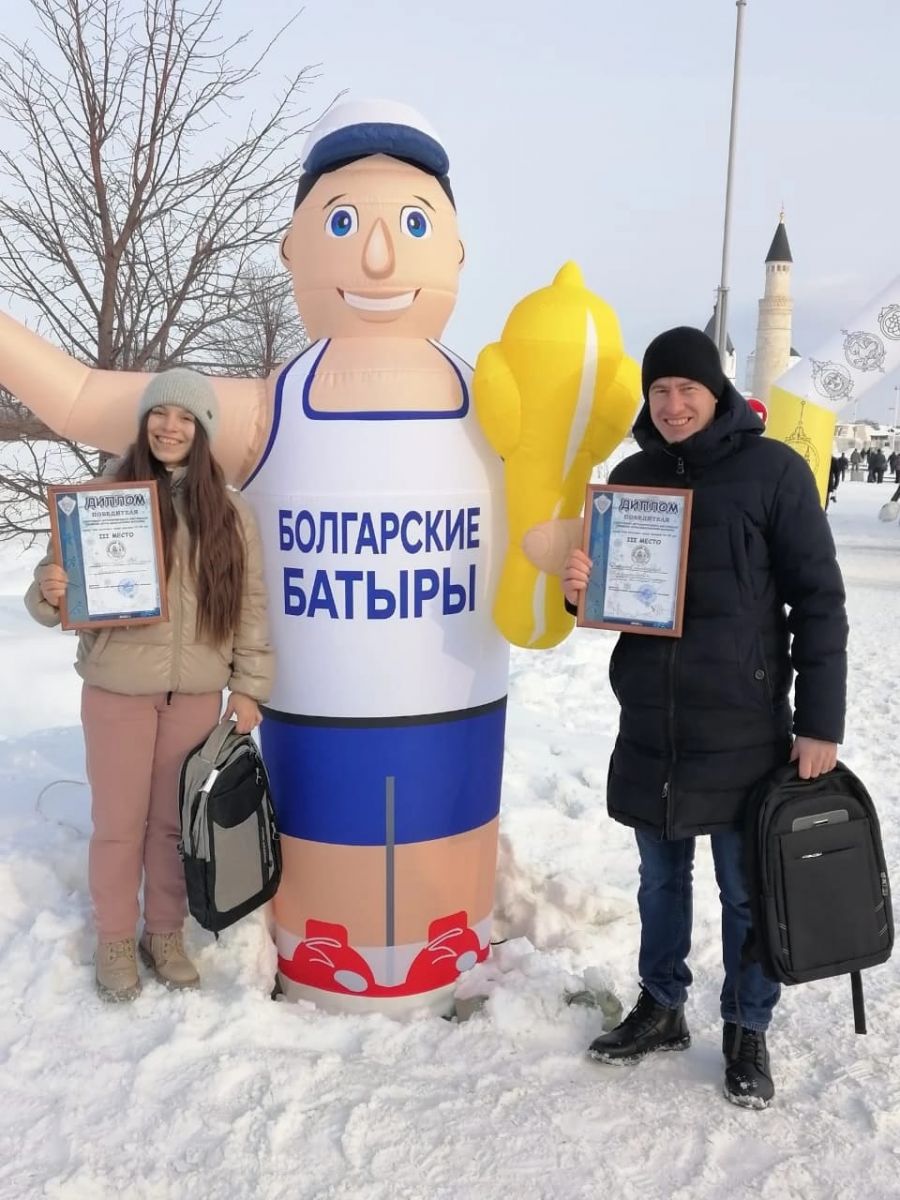 Участникам предстояло пройти 9 этапов и принять участие в спортивно-исторических состязаниях: стрельба из лука, поднятие тяжести, метание копья, бег на охотничьих лыжах и другие. Поздравляем Настину Эвелину и Долганова А.В. с победой!Биләр Яшь армиячеләре һәм аларның остазлары "Болгар батырлары"спорт-тарихи уеннарыннан призлы урыннар алып кайттылар!