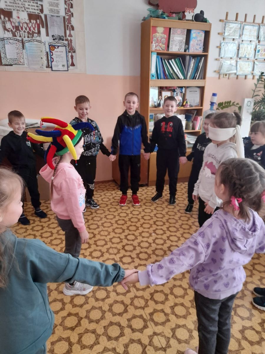 В рамках воспитательной работы согласна недели "Хоровод дружбы", учащиеся 1 классов провели старинную русскую игру "Бубенцы". Это - старинная русская забава. Участники встают в круг, в центр выходят два человека. Один держит бубенчики, второму закрывают глаза платком. Остальные игроки заводят веселую песенку: