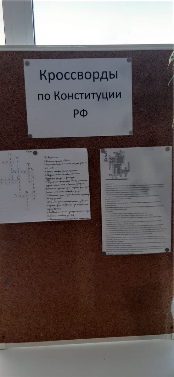 24.01.2023г в рамках недели истории и обществознания с ребятами 5-11 классами в перемены проведена викторина по Конституции РФ. Учащиеся 7-11 кассов разгадывали кроссворды.