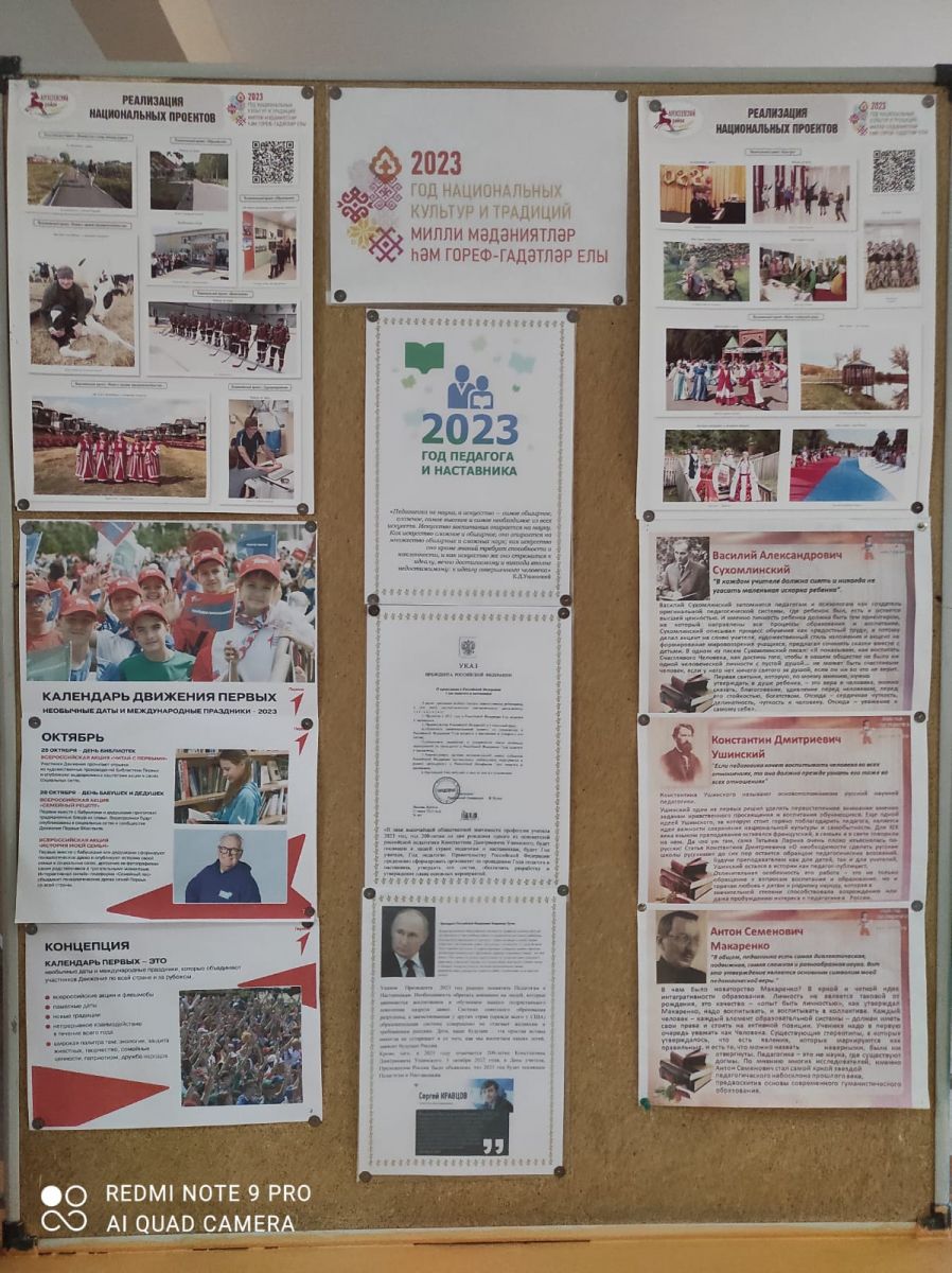 Оформление стендов, посвященных Году педагога и наставника и «Учителя славится Россия»/"Укытучылар белән Россия данлана" һәм Укытучы һәм Остаз елына багышланган стендлар. 20.01.2023