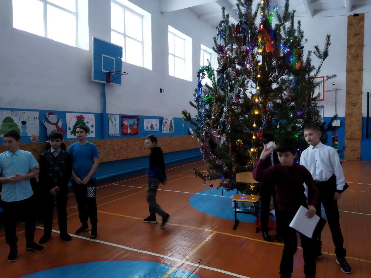 Новогодние представления, подготовленные ребятами, начались в МБОУ "Билярская СОШ". Праздничный зал украшен новогодними газетами и фотозоной.