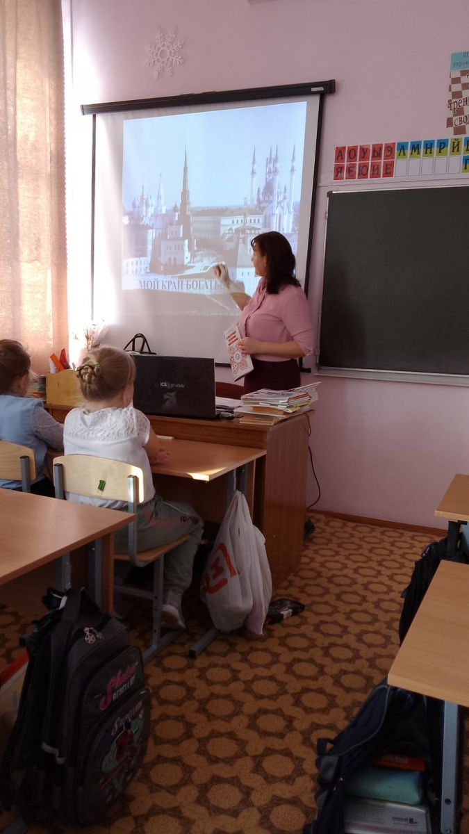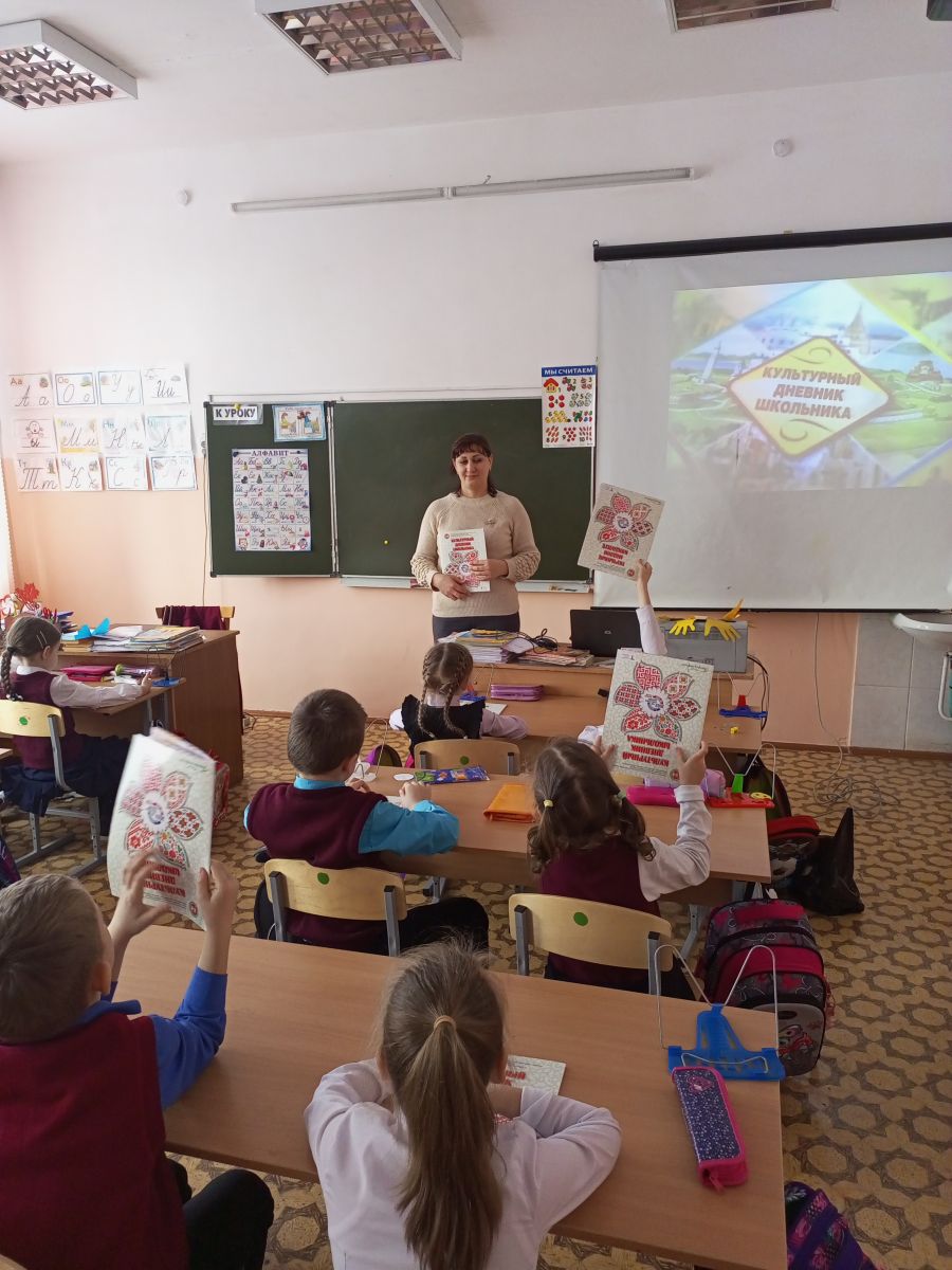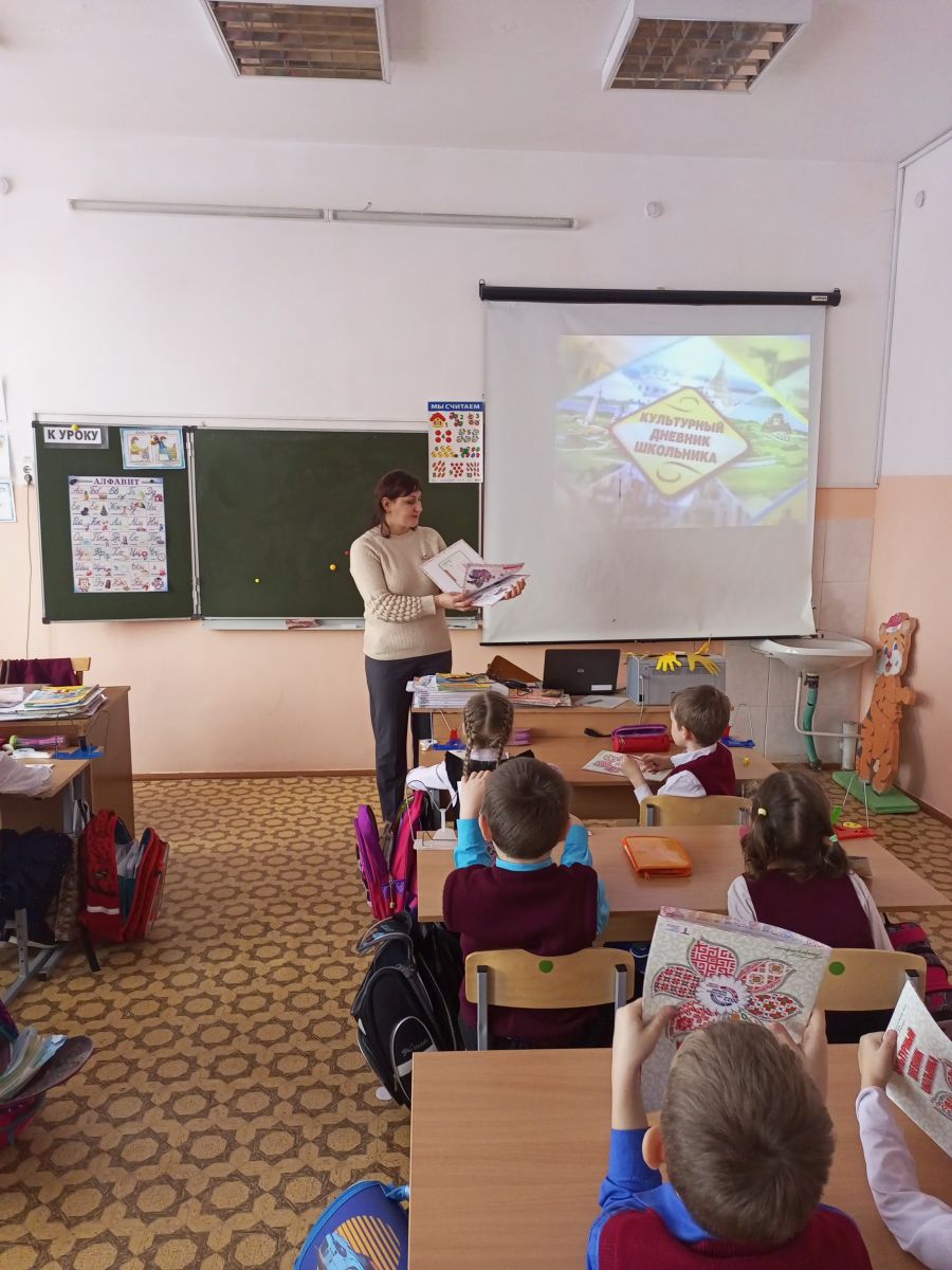 В рамках образовательного проекта "Культурный дневник школьника", который ориентирован на приобщение школьников культурному наследию Республики Татарстан, с учащимися 1 классов был проведен урок Культуры, ребятам были вручены дневники для знакомства, его ведения памятных и увлекательных путешествий по достопримечательностям, местам культурного наследия родного края, посещения культурно-архитектурных памятников, музеев, театров и т.д., а также для принятия участия в конкурсе "Самый лучший культурный дневник школьника". Желаем удачи!!!