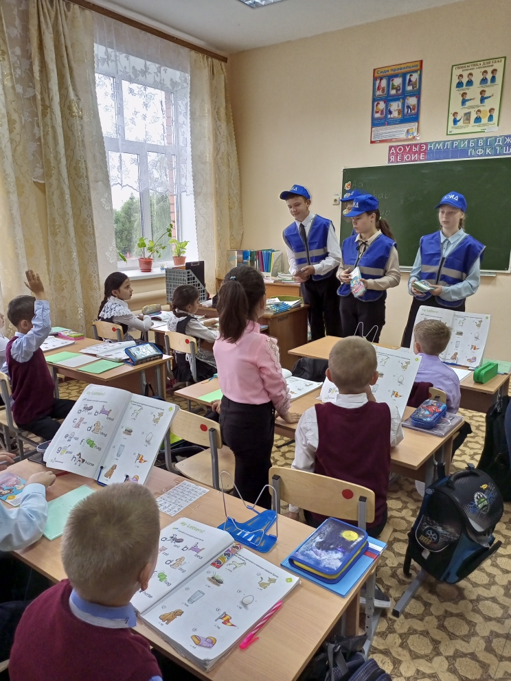 В рамках профилактического месячника "Внимание -дети!" участники школьного отряда ЮИД "Светофор" выступили перед обучающимися начального звена и раздали им памятки. Ребята в стихах и песнях напомнили о правилах дорожного движения и необходимости из выполнять.