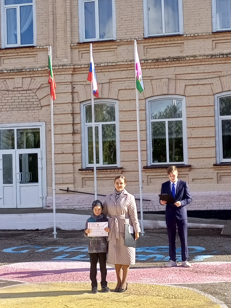 05.09.2022 года в МБОУ "Билярская СОШ" началась учебная неделя с церемонии поднятия государственных флагов Российской Федерации, Республики Татарстан и Алексеевского муниципального района. На церемонии было вручено благодарственное письмо ученицы 11 класса Гайнуллиной Полине за вклад в становление и развитие Детского совета при Уполномоченном по правам ребенка в Республике Татарстан, активное взаимодействие с представителями детского сообщества по их правовому просвещению.