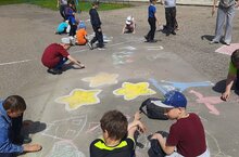 В пришкольном оздоровительном лагере «Радуга» и лагере труда и отдыха МБОУ «Билярская СОШ» в рамках празднования Дня России была организована акция «Россия рисует!», в рамках которой был нарисован креативный флаг Российской Федерации.