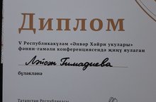 Учащаяся МБОУ «Билярская СОШ» Гимадеева Лейсан приняла участие в V Республиканской НПК «Анвар Хайри» и получила диплом I степени.