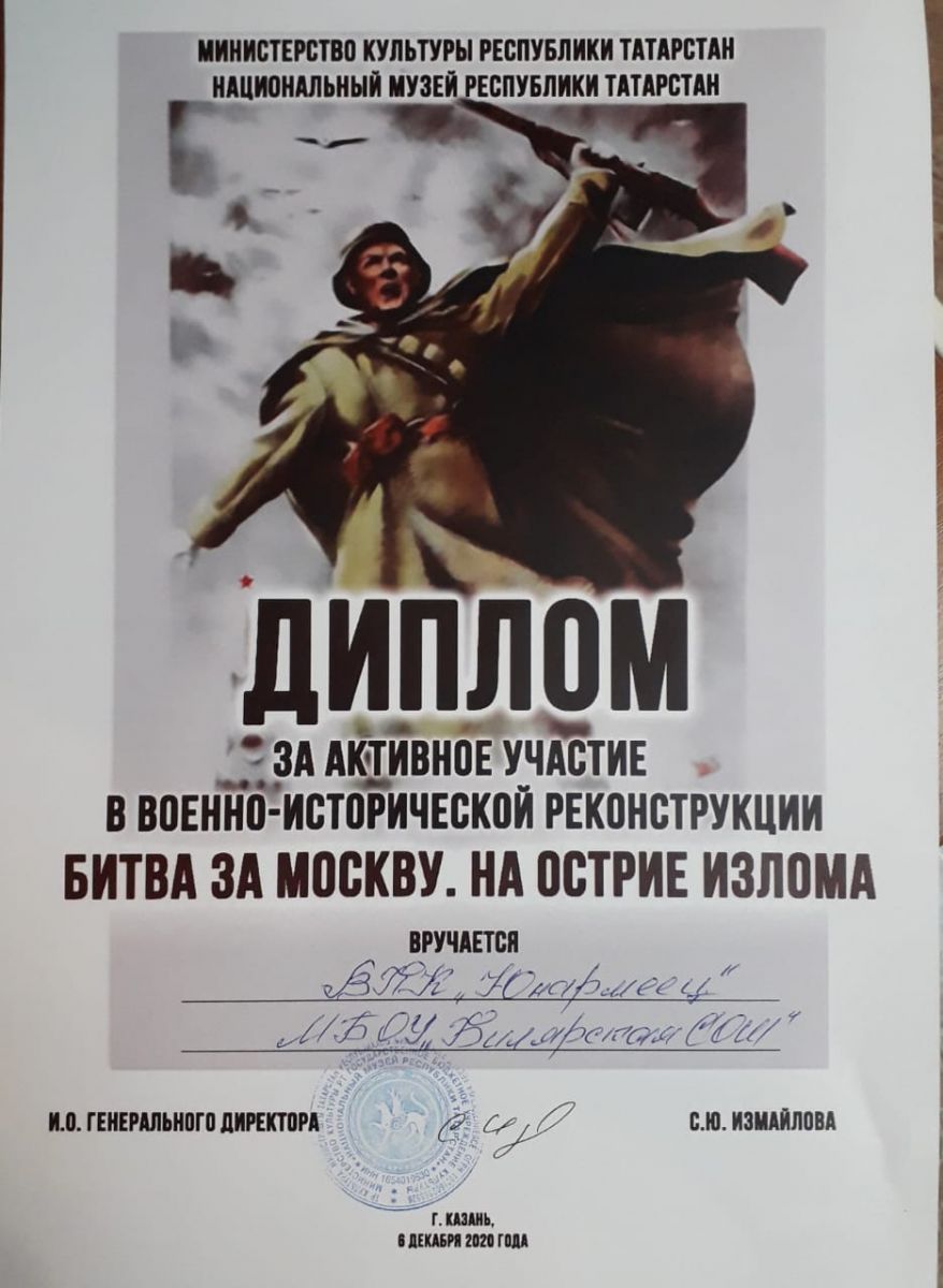 «Юнармейцы» МБОУ «Билярская СОШ» приняли участие в военно-патриотической реконструкции «Битва за Москву, на острие излома» и посетили Национальный музей.