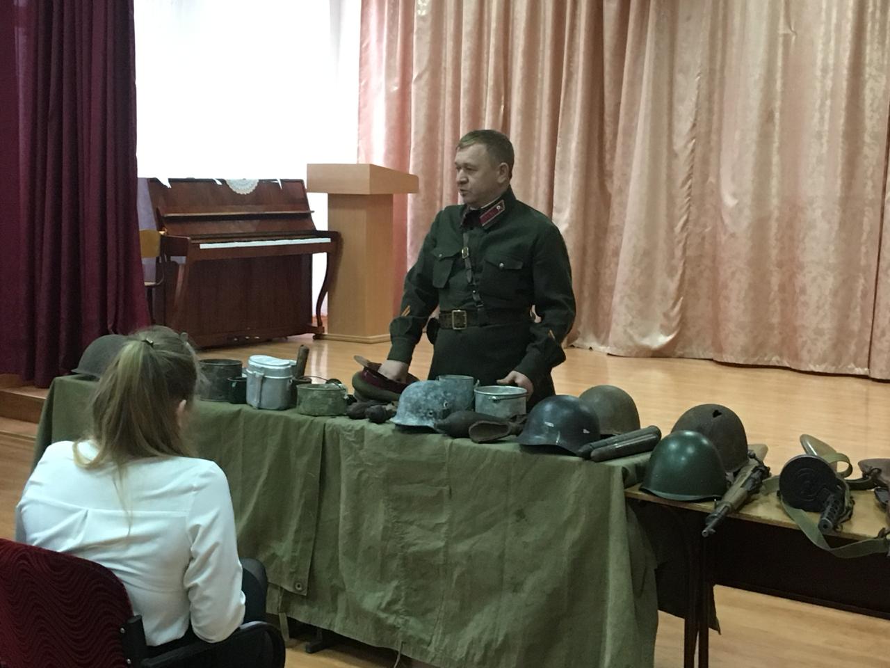 Руководитель военно-патриотического клуба «Звезда» Осянин В.А. посетил Билярскую СОШ и рассказал учащимся по классам о своей деятельности, а так же познакомил с выставкой.