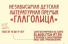 11 марта 2019 года стартовала VI Независимая Детская Литературная Премия «Глаголица», wvvw.glagolitsa-rt.ru. прием конкурсных работ осуществляется до 05 сентября 2019 г. включительно. Данному конкурсу присвоен статус международного конкурса, в связи с широкой географией Литературной Премии.