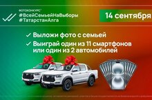 14 сентября, в день проведения выборов Раиса Татарстана и муниципальных депутатов пройдет фотоконкурс #ТатарстанАлга #ВсейСемьейНаВыборы. По его итогам можно выиграть автомобиль или смартфон
