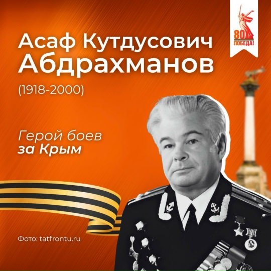 Сезне Татарстаннан Бөек Ватан сугышы геройлары язмышы белән таныштыруны дәвам итәбез Бүген карточкаларда - тормышын флот белән бәйләгән Асаф Абдрахманов тарихы. Сугыш елларында ул бронекатер белән командалык итә, Кырымны фашист илбасарларыннан азат итү буенча операциянең уңышын тәэмин итә. Бу операция өчен 1944 елның гыйнварында аңа Советлар Союзы Герое исеме бирелә #Победа80 #Героитатарстан