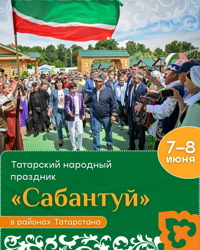 Сабан туена рәхим итегез! Бу ял көннәрендә үк республикада татарстанлыларның иң яраткан бәйрәмнәренең берсе-Сабантуйны бәйрәм итү башланачак. Традицион спорт ярышларын, халык уеннарын, музыка һәм биюләрне һәр татарстанлы ярата. "Сабантуй - кабатланмас иҗат һәм ачыклык атмосферасы булган бәйрәм. Аның матур мәйданы елдан-ел төрле яшьтәге, төрле милләт һәм төрле дин кешеләрен берләштерү һәм мәдәни яктан баету үзәгенә әверелә. Моннан тыш, Сабантуй-туганнарның һәм якыннарның очрашу урыны, бу аны иң гаиләле һәм җылы бәйрәм итә", - дип билгеләп үтте Татарстан рәисе Рөстәм Миңнеханов. Ял көннәрендә Сабантуй республика районнарында узачак. 14 июньдә - Чаллыда, ә 21 июньдә Казанда.