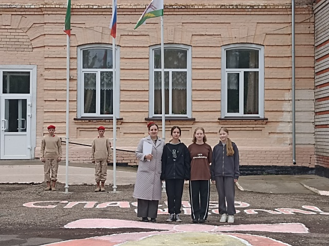 Сегодня, после исполнения гимнов и поднятия флагов, директор Билярской школы Климова М. А. поздравил ребят за активное участие в конкурсах, а также