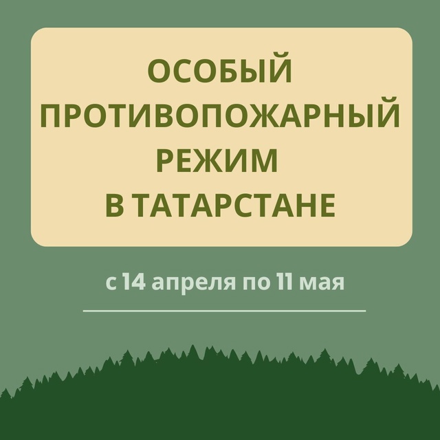 14 апрельдән 11 майга кадәр Татарстанда янгынга каршы махсус режим кертелә Бу нәрсә һәм тәртип бозучыларга нинди штрафлар янавын карточкаларда аңлатабыз. Чикләүләрне үтәү урман янгыннарын булдырмый калырга һәм табигатьне, торакны һәм инфраструктураны сакларга ярдәм итә ала!