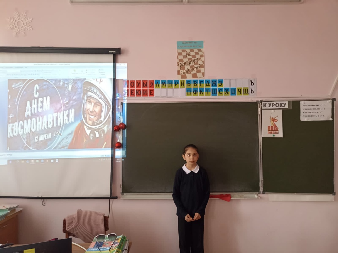 4-б классе на уроке русского языка ребята писали "Послание землян в космос", на уроке литературного чтения - читали текст на тему "Первый человек в космосе", отвечали на вопросы по тексту, составляли свои вопросы. На уроке окружающего мира - провели познавательную викторину "Космос далёкий и близкий".
