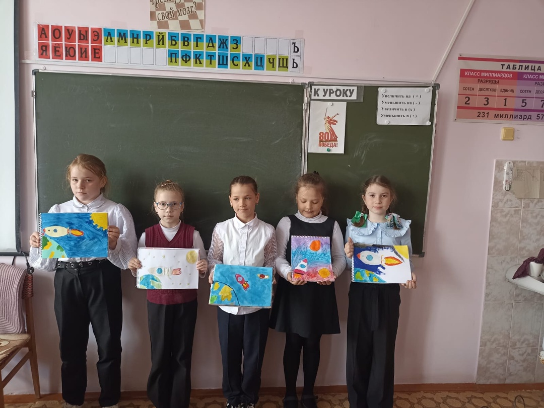 "Что такое космос?". Во время урока окружающий мир дети посмотрели видео о первых космонавтах и об их жизни на МКС. На уроке ИЗО обучающиеся рисовали рисунки на тему "Космос".В 3-а классе на уроках была проведена образовательная деятельность, посвященная дню космонавтики.Полученные знания дети закрепили в своих творческих работах и рисунках.