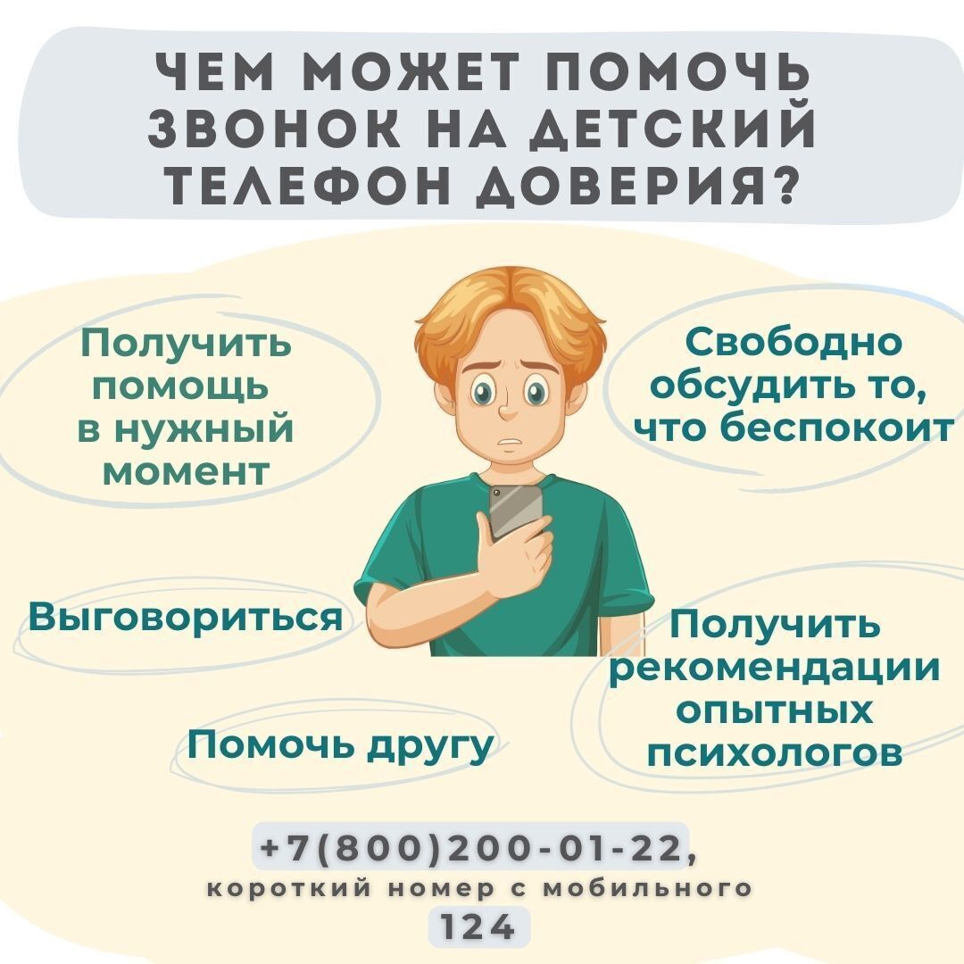 Бывают моменты, когда дети нуждаются в поддержке и защите. Хотим напомнить вам о работе детского телефона доверия.