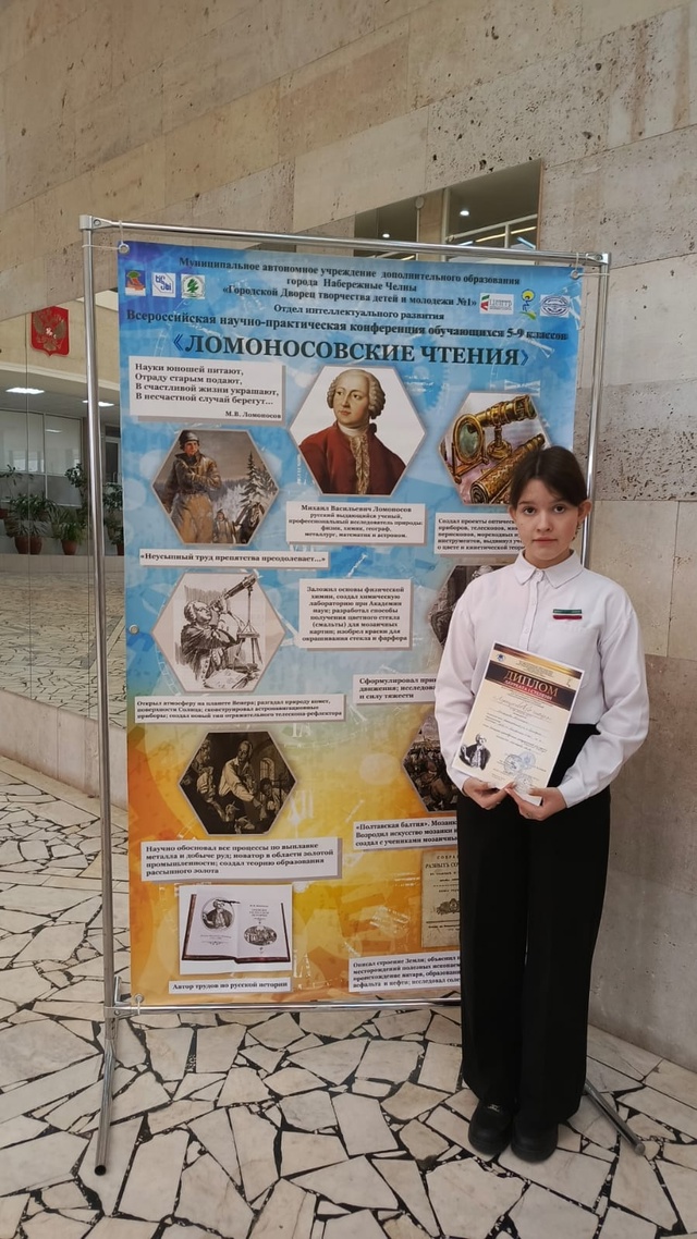 Поздравляем Мальцеву Камиллу, ученицу 7 класса Билярской школы, с ПОБЕДОЙ на Всероссийской научно-практической конференции "Ломоносовские чтения" (научный руководитель Мальцева А. А). Молодцы! Гордимся Вами!