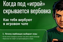 В карточках показано, какие слова и действия должны насторожить в игровом чате.