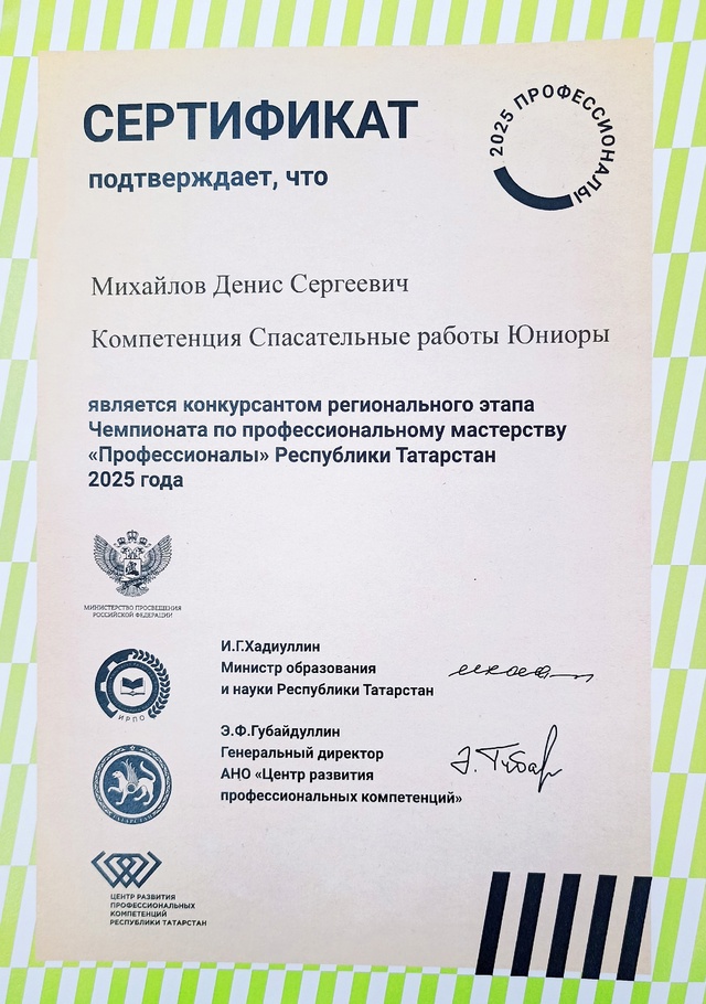 Региональный этап Чемпионата по профессиональному мастерству "Профессионалы" по компетенции Спасательные работы Юниоры Республики Татарстан/Коткару эшләре компетенциясе буенча "профессионаллар" һөнәри осталык чемпионатының төбәк этабы Татарстан Республикасы юниорлары 10.02.2025