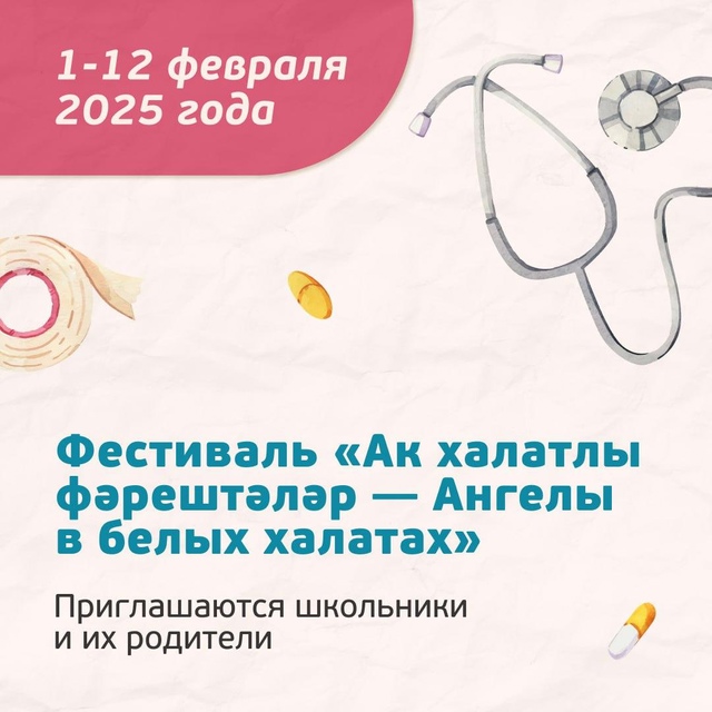 Фестиваль «Ак халатлы фәрештәләр — Ангелы в белых халатах» пройдет для школьников и будущих медиковС 1 по 12 февраля в Татарстане пройдет XIII ежегодный фестиваль, посвященный медицине. Это прекрасная возможность для школьников, мечтающих о карьере в здравоохранении, погрузиться в мир медицины.