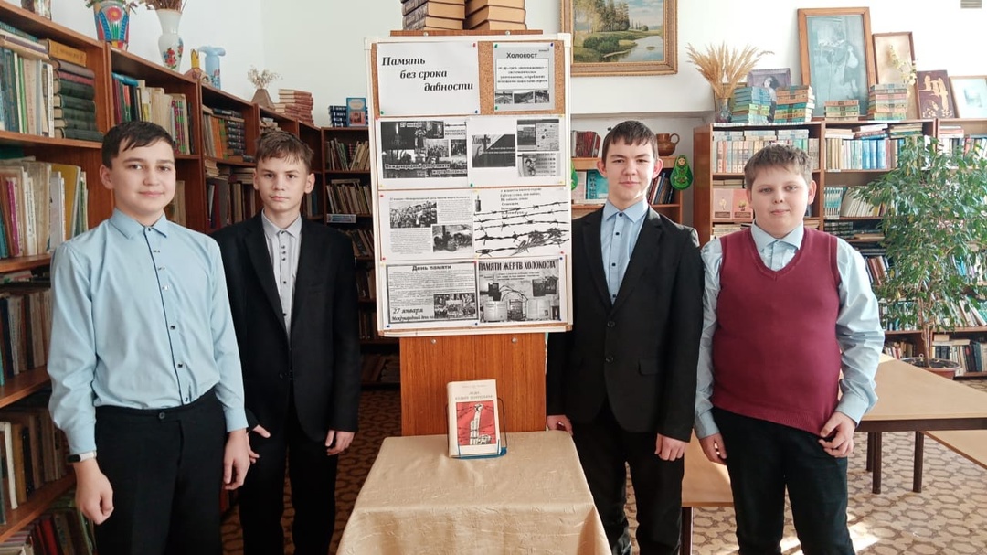 В школьной библиотеке организована выставка"Память без срока давности " и проведён классный час с ребятами 5 классов.