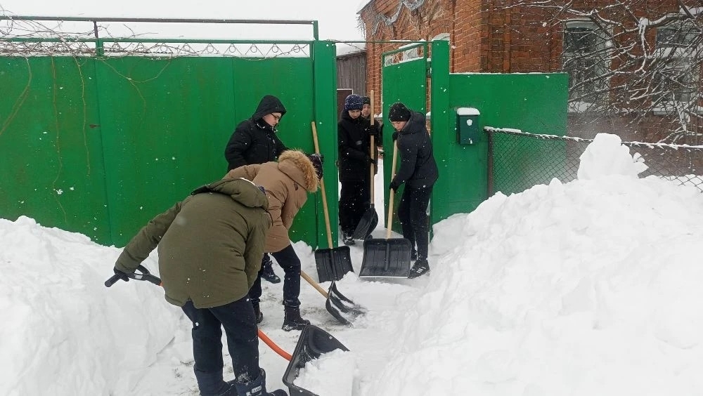 Сегодня дружной командой пришли к дому юбилярши, чтобы освободить двор от сугробов. Лопаты, улыбки и горячие сердца — вот что согревало этот зимний день.