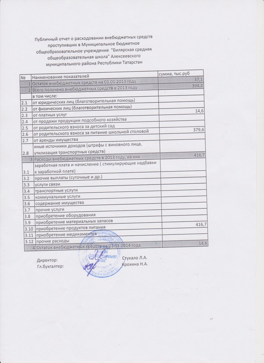 Публичный отчёт о расходовании внебюджетных средств 2014г.