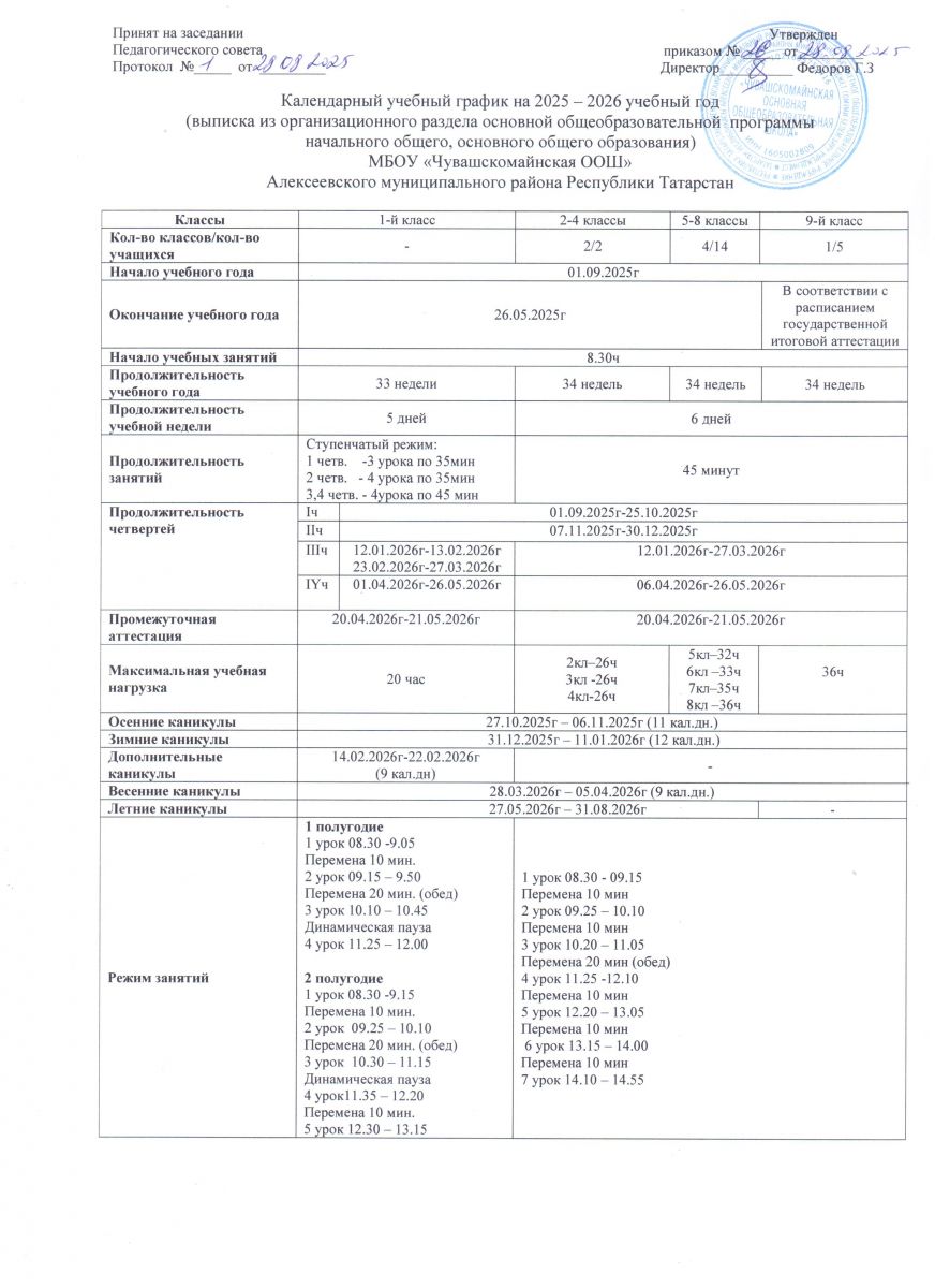 Календарный учебный график на 2025-2026 учебный год