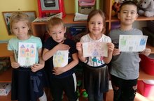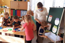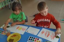 На занятии по рисованию дети закрепляли понятия цвета, развивали мышление, а также учились приёму сплошного закрашивания.