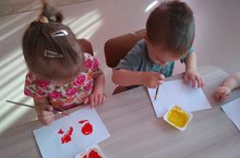 В старшей группе прошла тематическая неделя "Золотая осень". Дети рисовали нетрадиционным методом "печать листочками". Через средства изобразительной деятельности ребята учились видеть красоту природы.