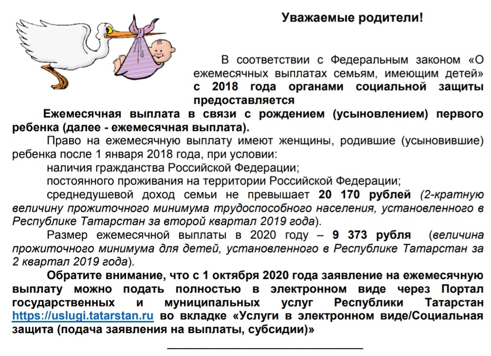 "О ЕЖЕМЕСЯЧНЫХ ВЫПЛАТАХ В СВЯЗИ С РОЖДЕНИЕМ (УСЫНОВЛЕНИЕМ) ПЕРВОГО РЕБЁНКА ПОСЛЕ 1 ЯНВАРЯ 2018 ГОДА" 15.10.2020