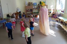 В рамках недели "Золотая осень" к детям 2 группы раннего возраста приходила Осень. Малыши вместе с гостьей пели песни, танцевали, играли в игру "Солнышко и дождик".