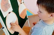 Дети учились моделировать образ ёжика, дополнять "туловище" - форму. вылепленную воспитателем, иголками из пластмассовых трубочек.