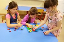 Дети учились создавать рельефные изображения из пластилина, отщипывать небольшие кусочки платилина от большого куска, скатывать их в комочек.
